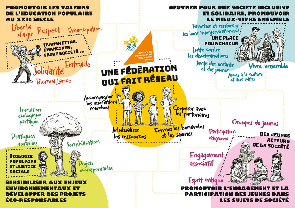 Sa formalisation marque une étape importante, mais ce n’est qu’un commencement. Pour qu’il prenne vie, se traduise en actions concrètes et guide nos pratiques au quotidien, il devra être nourri de l’engagement de chacune et chacun d’entre nous, que l’on travaille dans les structures périscolaires, auprès des adolescents, des familles, dans le domaine de la culture, dans les associations membres, etc…