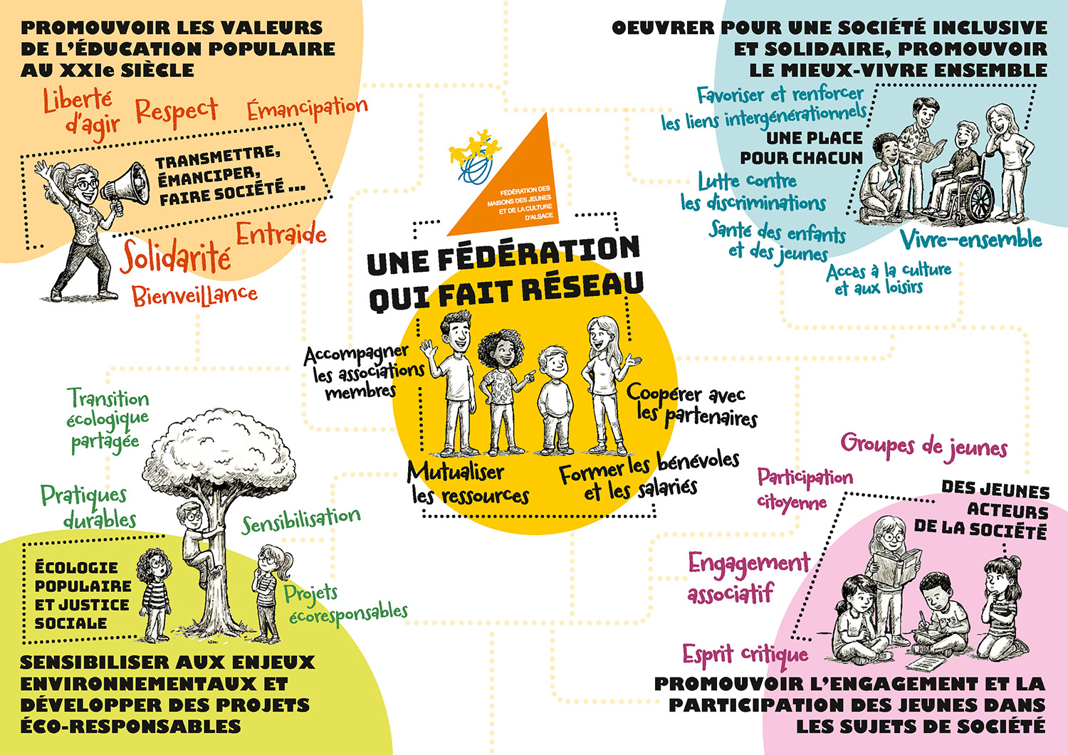 Notre Projet Associatif repose sur 4 grandes thématiques :